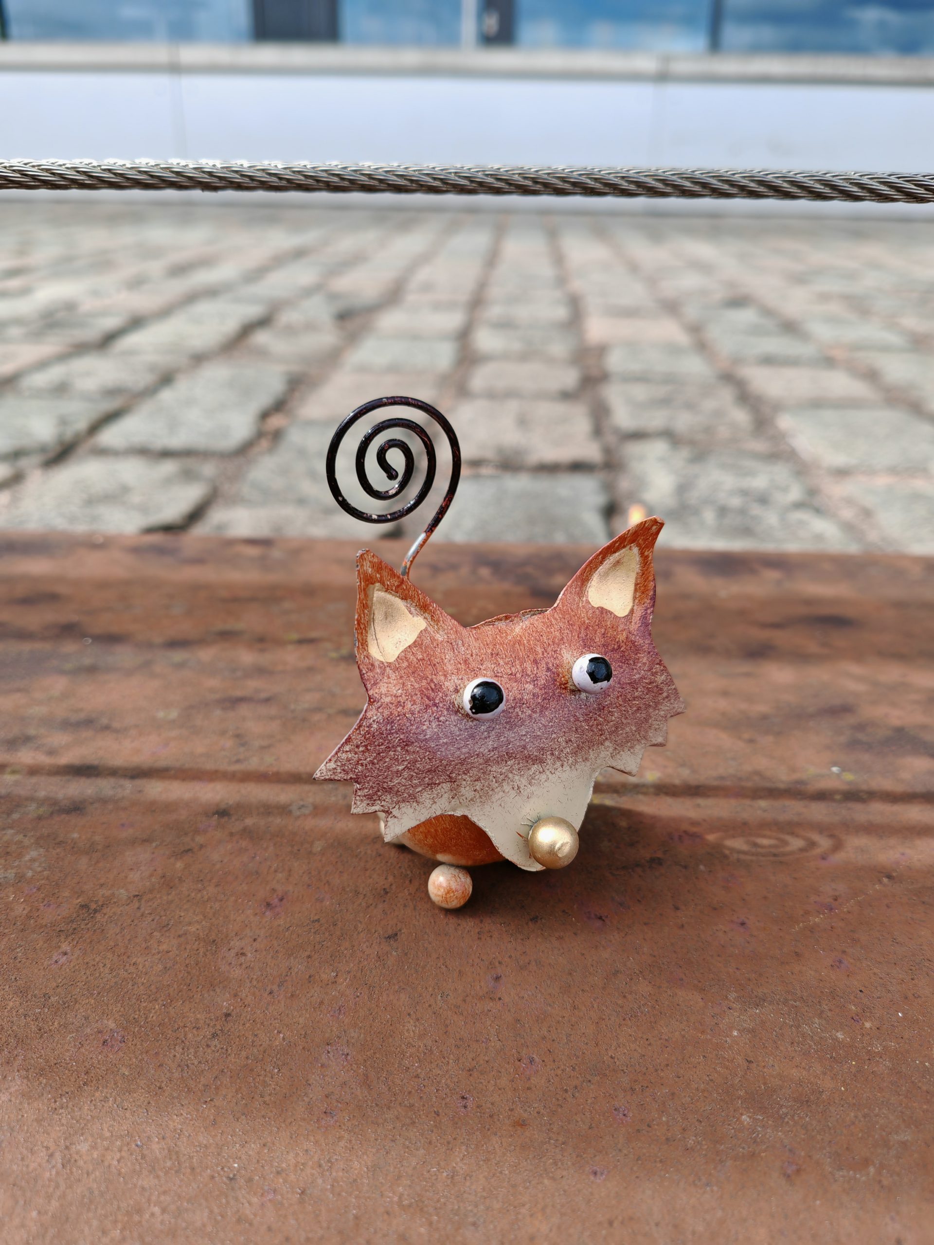 Dieser niedliche Mini Metalltier Fuchs ist eine besondere Dekofigur und gleichzeitig ein kreativer Geldgeschenkhalter oder Fotohalter.