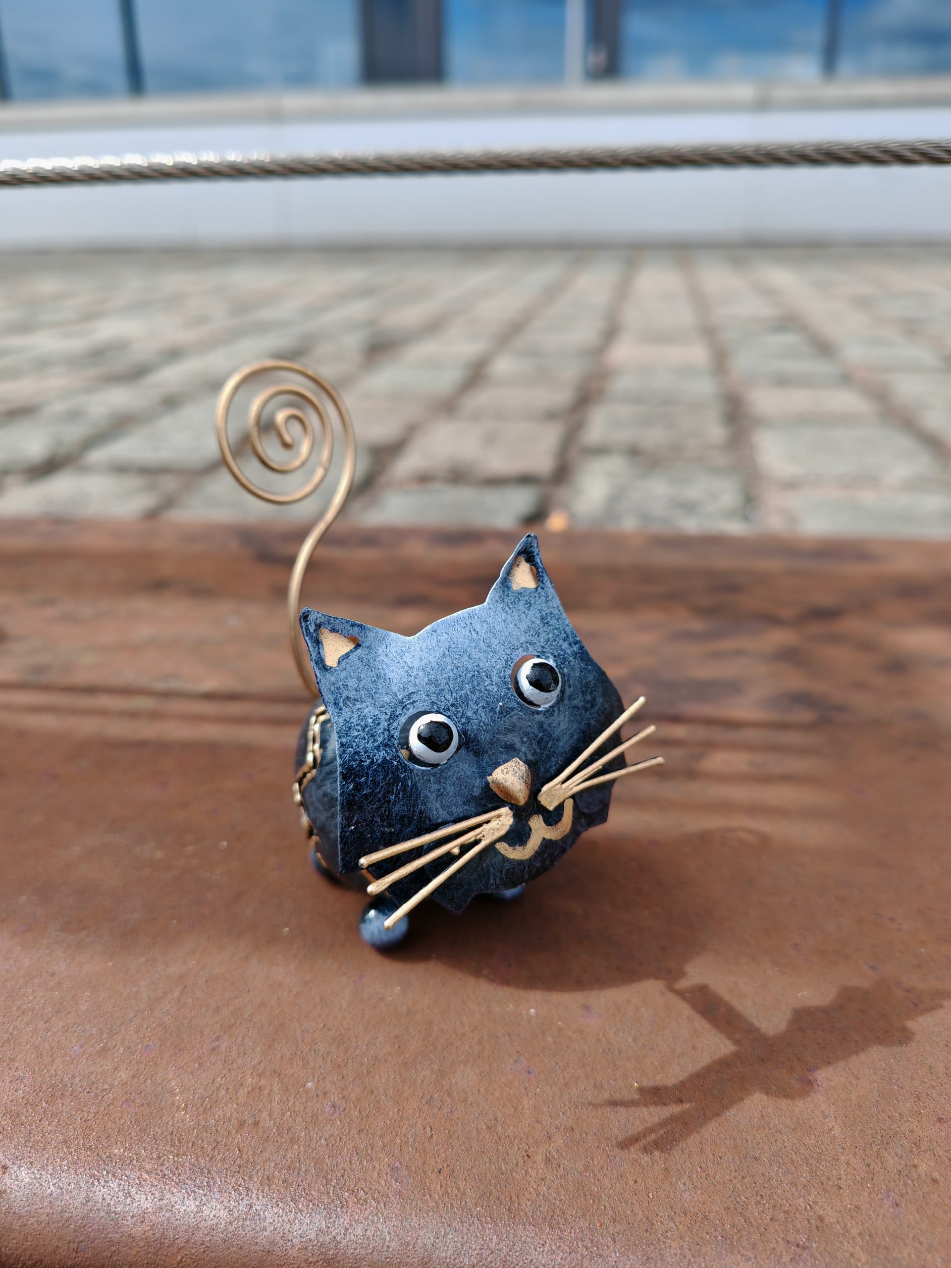 Die Katze ist aus Metall handgearbeitet und bemalt und ein echtes Highlight für Katzenliebhaber.